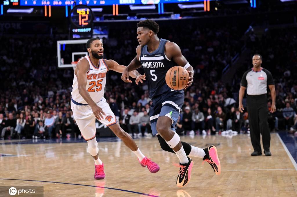 第二节,森林狼展开猛烈攻势,迅速将分差扩大至11分,给尼克斯施加了压力。尽管尼克斯在小节后段努力追赶,试图拉近比分,但此时森林狼的防守依然坚固,第二节结束时,森林狼以44-38保持领先。